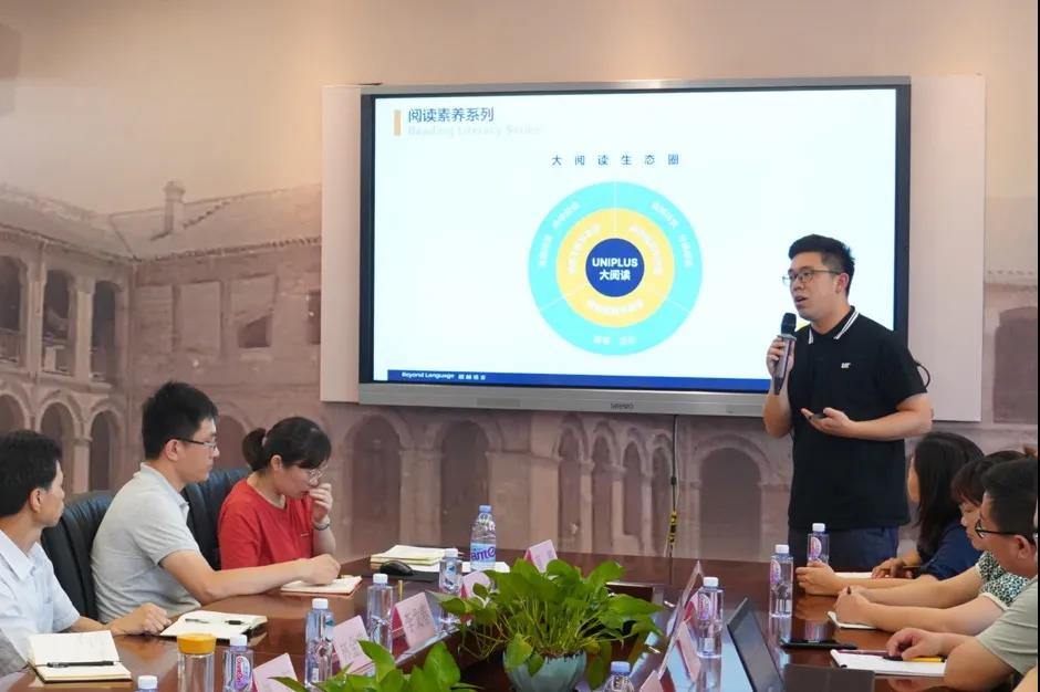 教育合作事业部教学支持部英语课程总监罗霄对北外国际外语特色课程进行了深入阐释,详细介绍了课程的应用、教材的使用、教学资源的提供等学校关心的问题。他同时还对北外国际教师认证体系SEC-TD和持续默读方法SSR进行了详细介绍,并从吸引好老师、留住好老师、发展好老师三个方面解读了北外国际如何助力学校的外语特色国际化办学。