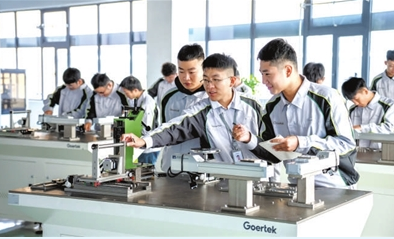 在歌尔匠造中心机械装调理实一体化教室里,学生在学习典型机械结构装配调试。资料图片