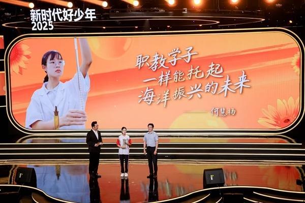 何慧杨获评2025年全国“新时代好少年”。2025年8月,2025年全国“新时代好少年”先进事迹发布仪式在宁波举行,她作为9名(组)重点推介人选之一,也是唯一中职生代表,参加了发布仪式。何慧杨在领奖时说:“我们职教学子,一样能托起海洋振兴的未来。”