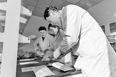 中国农业大学肇东实验站的科研人员在实验室忙碌。新华社发
