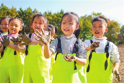 嘉兴市平湖经济技术开发区耘庐幼儿园的孩子们触摸天然泥土,在揉捏间感知泥性,尽享玩泥之乐。