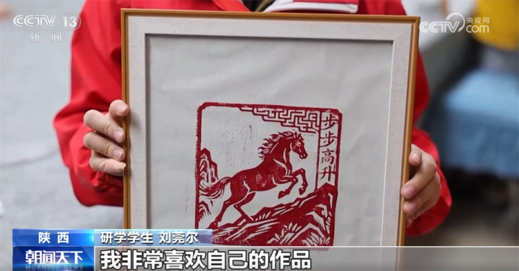 除了沉浸式历史研学,非遗体验类研学活动也深受青少年喜爱。在西安书院门的一家非遗体验馆内,孩子们认真学习木版拓印的制作技艺,感受非遗的魅力。