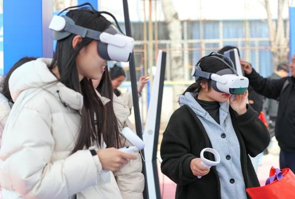 3月20日,山东科技大学开展春季综合类校园双选会,学生在会场的VR职业体验区参与互动。受访者供图